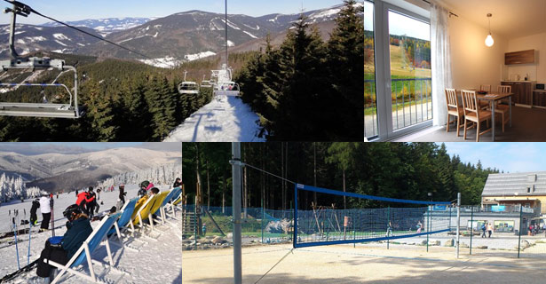 Plně vybavené apartmány s kuchyňkou a vlastním sociálním zařízením, které jsou vzdálené pouhých 150 m od sjezdovek, jejichž celková délka dosahuje 11,5 km, nabízíme za příznivou cenu. Středisko nabízí dostatečné množství aktivit a vyžití nejen v zimní sezonu, ale i po celý zbytek roku. Samozřejmostí je čistota a funkčnost všech zařízení.